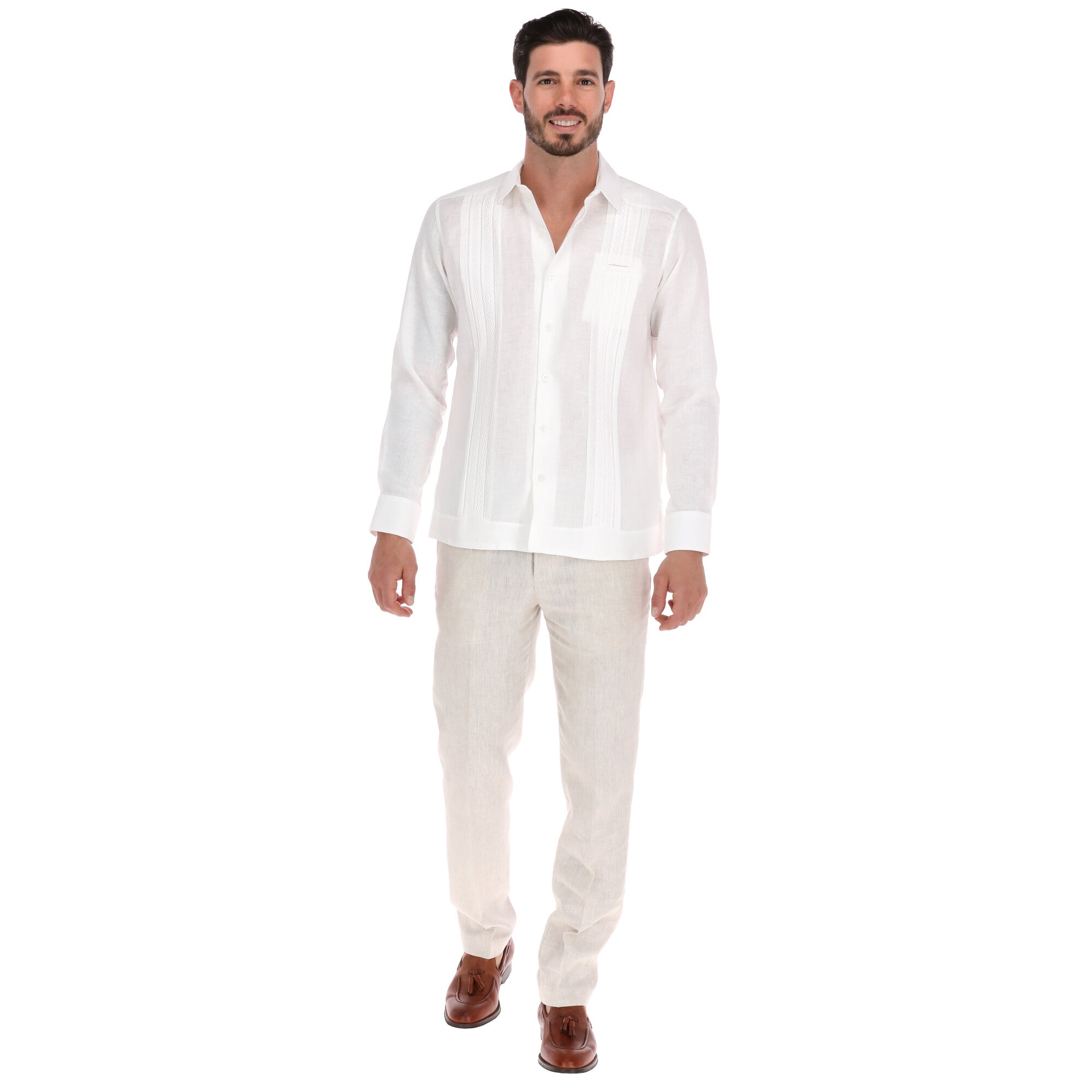 La Guayabera Murray de Camasha redefine la elegancia clásica con un diseño contemporáneo que conserva la esencia de la tradición. Confeccionada en 100% lino de calidad premium, esta prenda ofrece frescura, ligereza y comodidad, convirtiéndola en una opción ideal para cualquier ocasión.