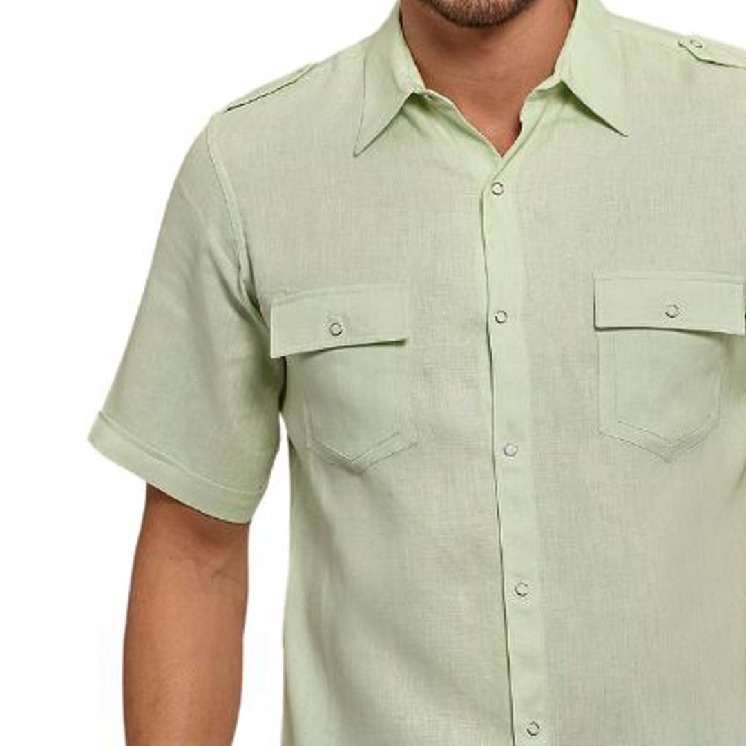 Nuestra camisa verde de lino con dos bolsas frontales es la combinación perfecta de elegancia casual y practicidad. El tejido de lino aporta una textura fresca y sofisticada, mientras que las bolsas ofrecen un toque funcional para llevar tus esenciales con comodidad y estilo.