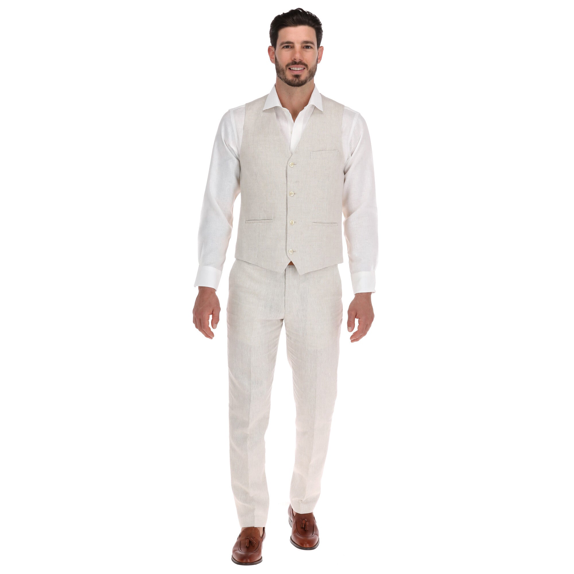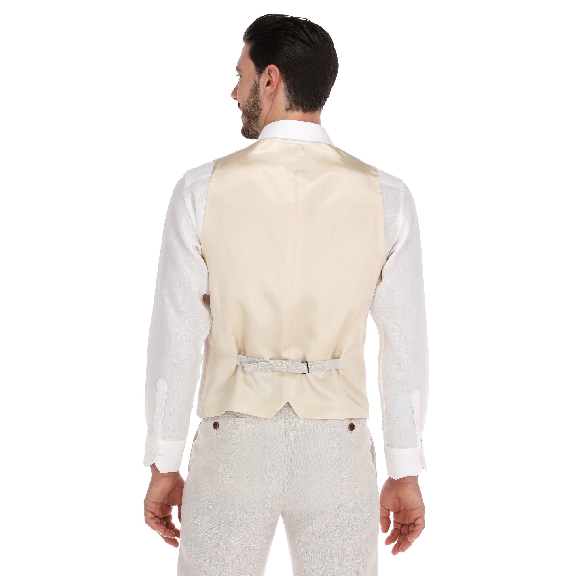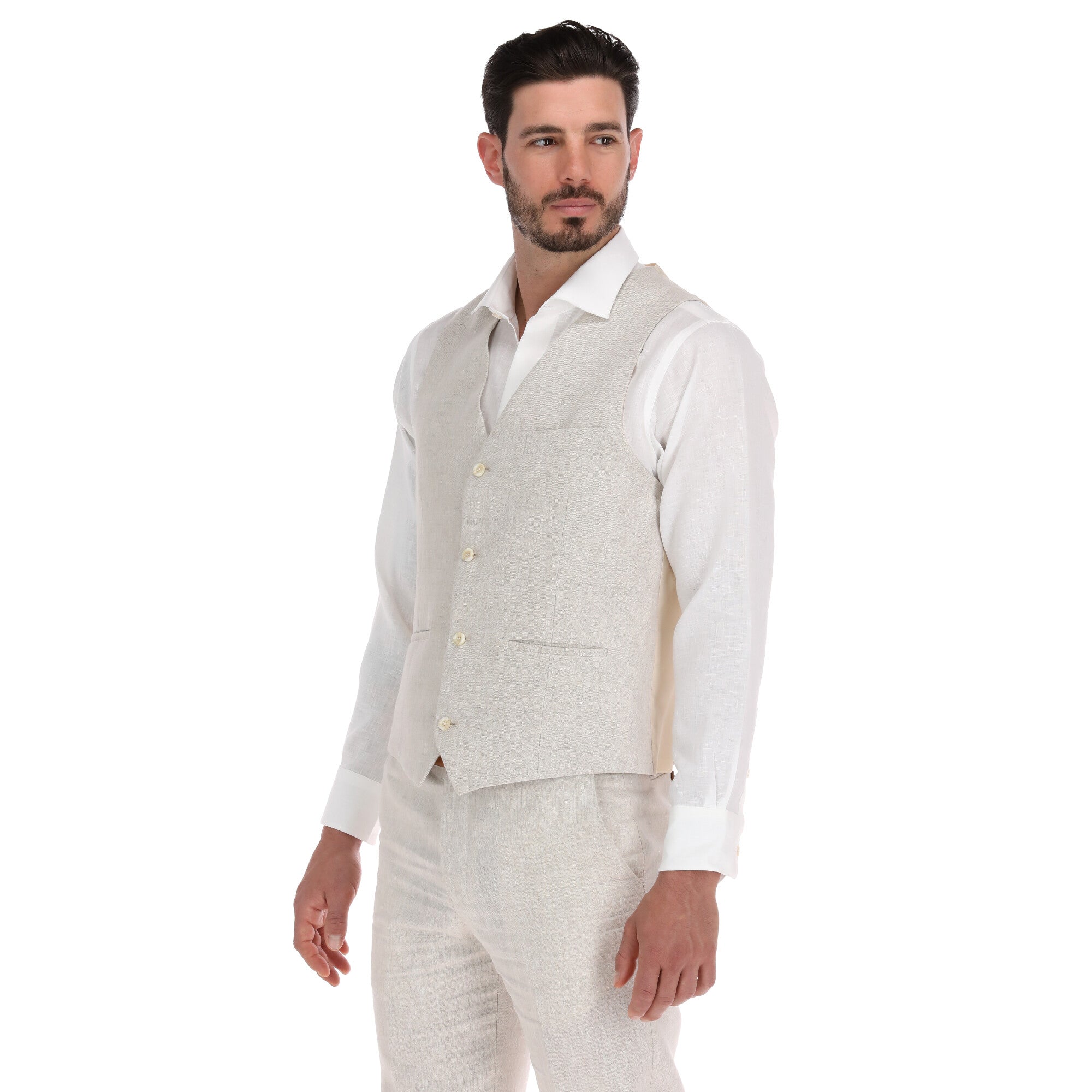 Nuestro Chaleco de Lino en color Arena es la encarnación del estilo estival y la elegancia natural. Su tono claro y cálido, junto con la textura slub del lino, lo convierte en el protagonista ideal para eventos de día, bodas en destinos tropicales o cualquier ocasión que exija un look luminoso y relajado.