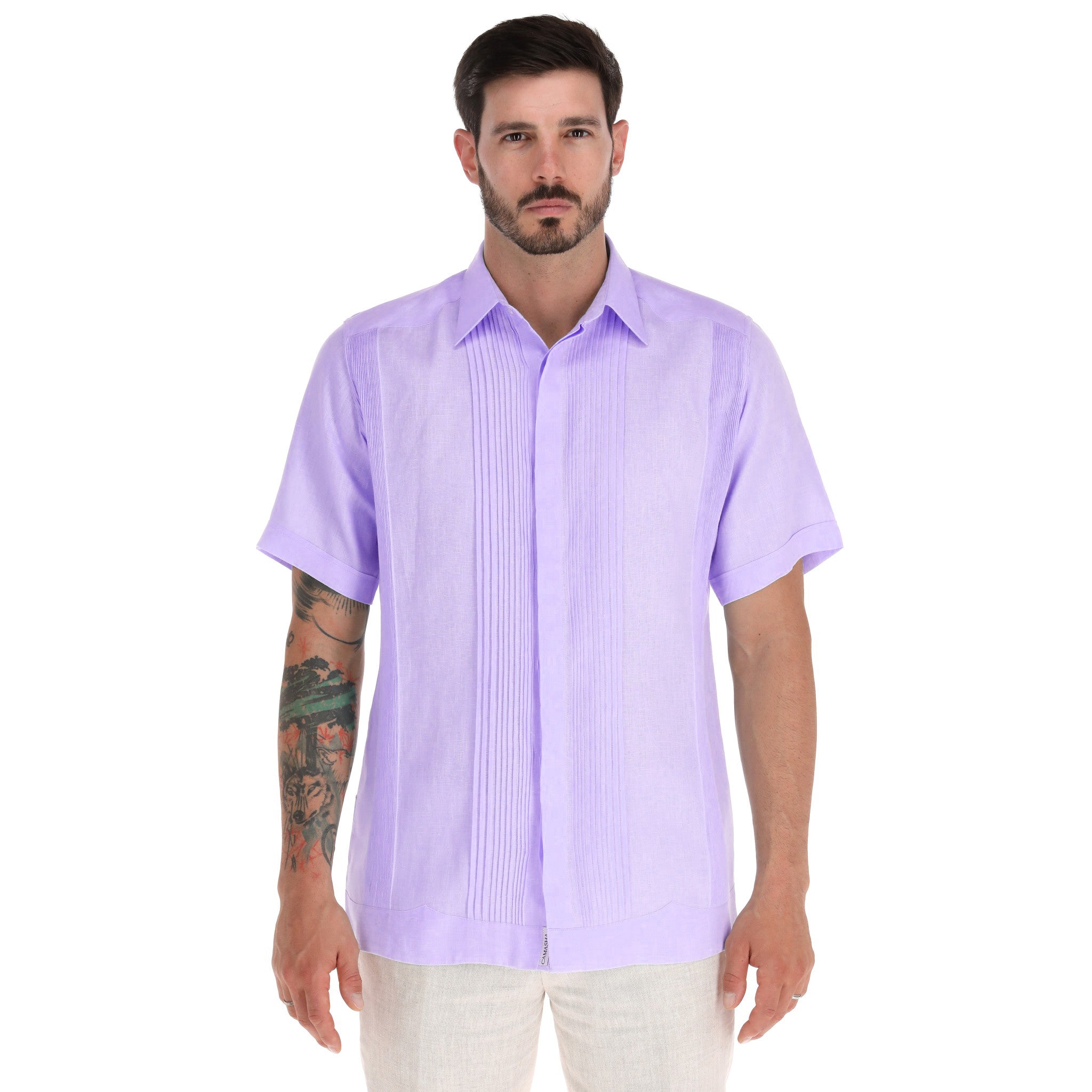 GUAYABERA BANDERAS MANGA CORTA MORADO