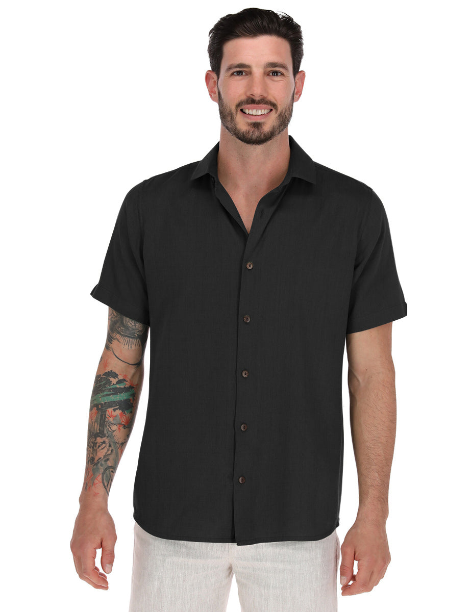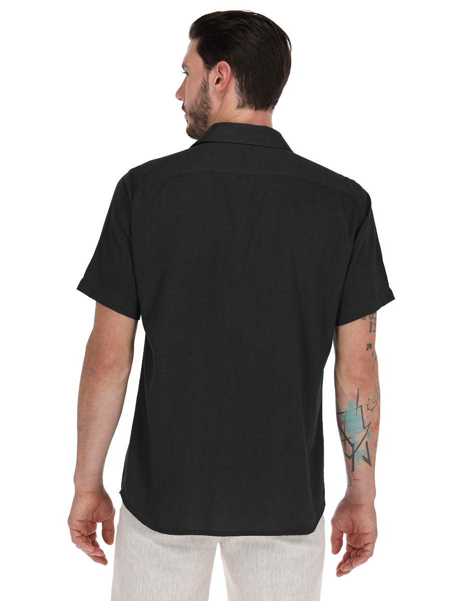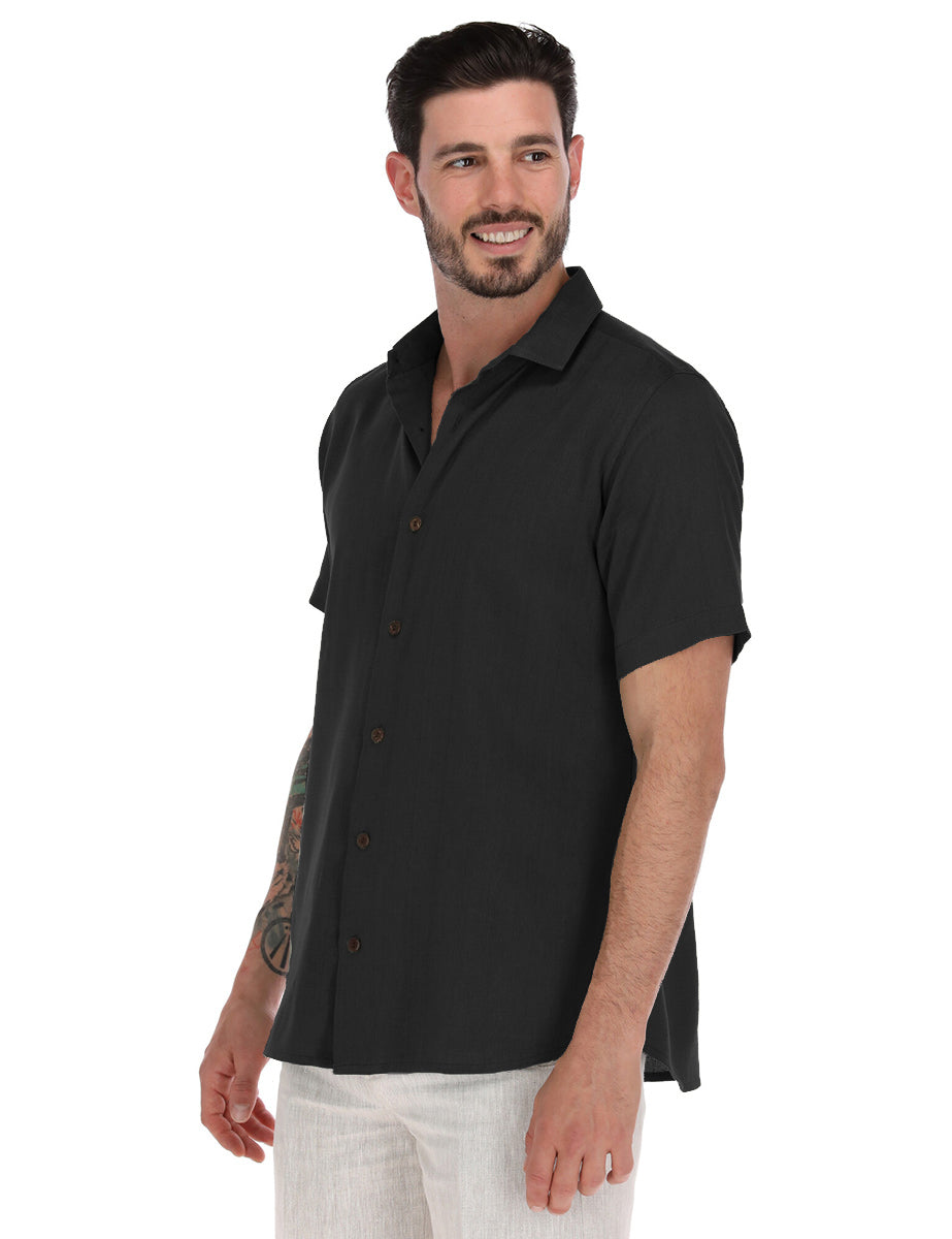 Experimenta la combinación perfecta de estilo y comodidad con nuestra camisa de manga corta para hombre 'Coco'. Confeccionada con una suave y transpirable mezcla de bambú y algodón en un elegante color negro, esta camisa te mantendrá fresco y cómodo en cualquier clima.