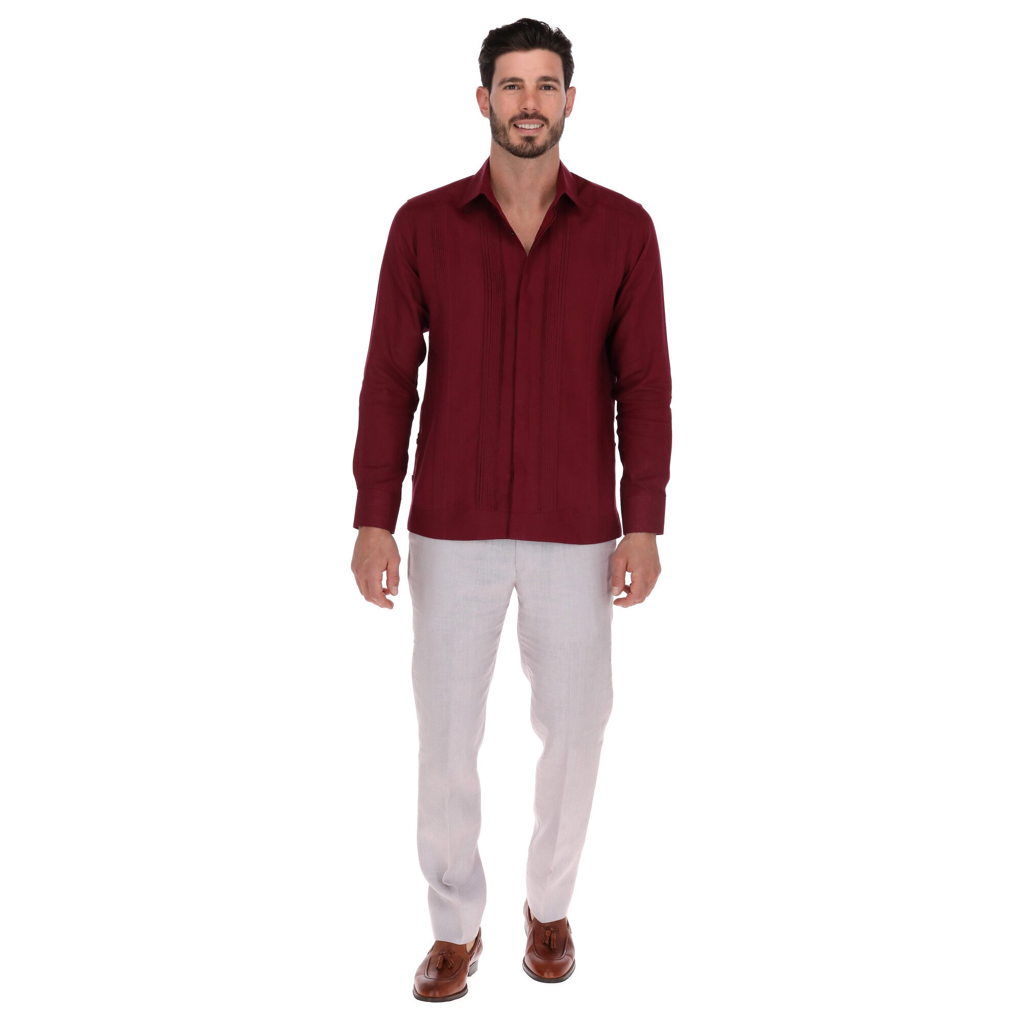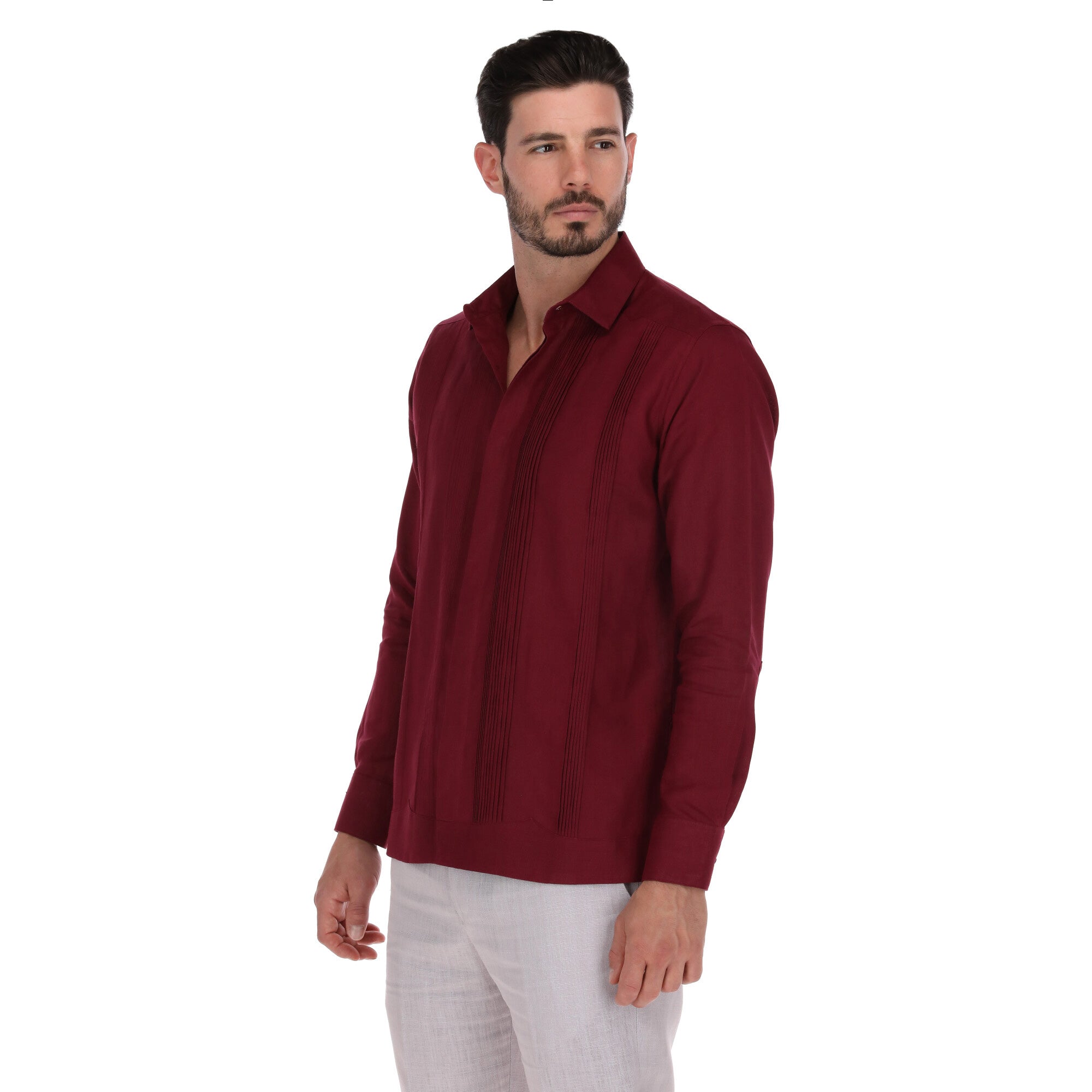 La Guayabera "Banderas" de Camasha personifica la cúspide de la elegancia y la tradición, concebida para hombres que aprecian la distinción en cada detalle. Esta pieza eleva el vestuario formal casual con un color profundo y un diseño artesanal.Ya sea para una boda en la playa, un evento cultural o una cena especial, esta guayabera te asegura una presencia imponente y confortable.