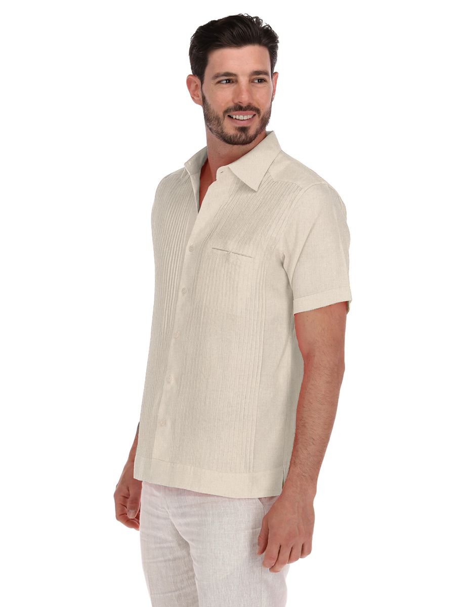 ¡Luce impecable y siéntete cómodo en cualquier ocasión con nuestra Guayabera Yucateca de Lino Puro! Ideal para el clima de México, esta camisa de manga corta en un elegante color arena es un básico que no puede faltar en tu guardarropa. Perfecta para eventos casuales, reuniones o celebraciones, te garantiza frescura y un estilo auténtico.