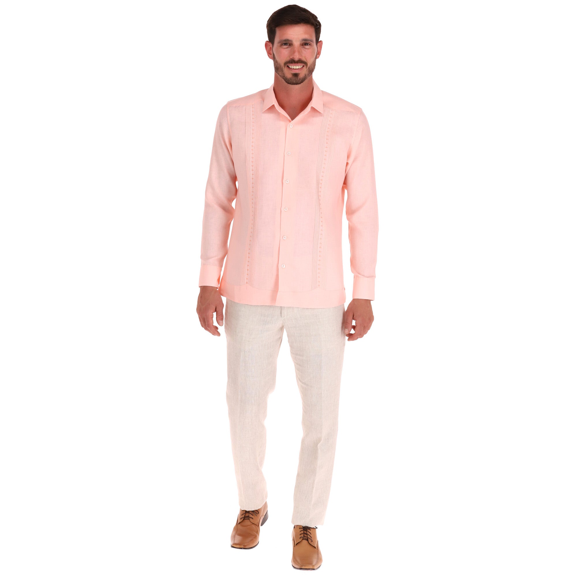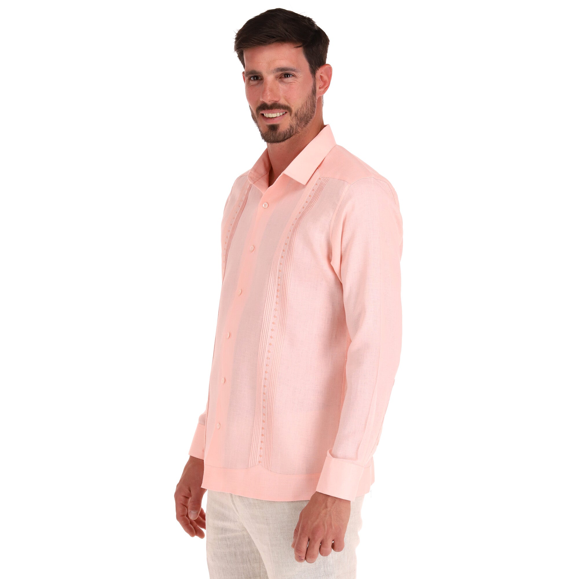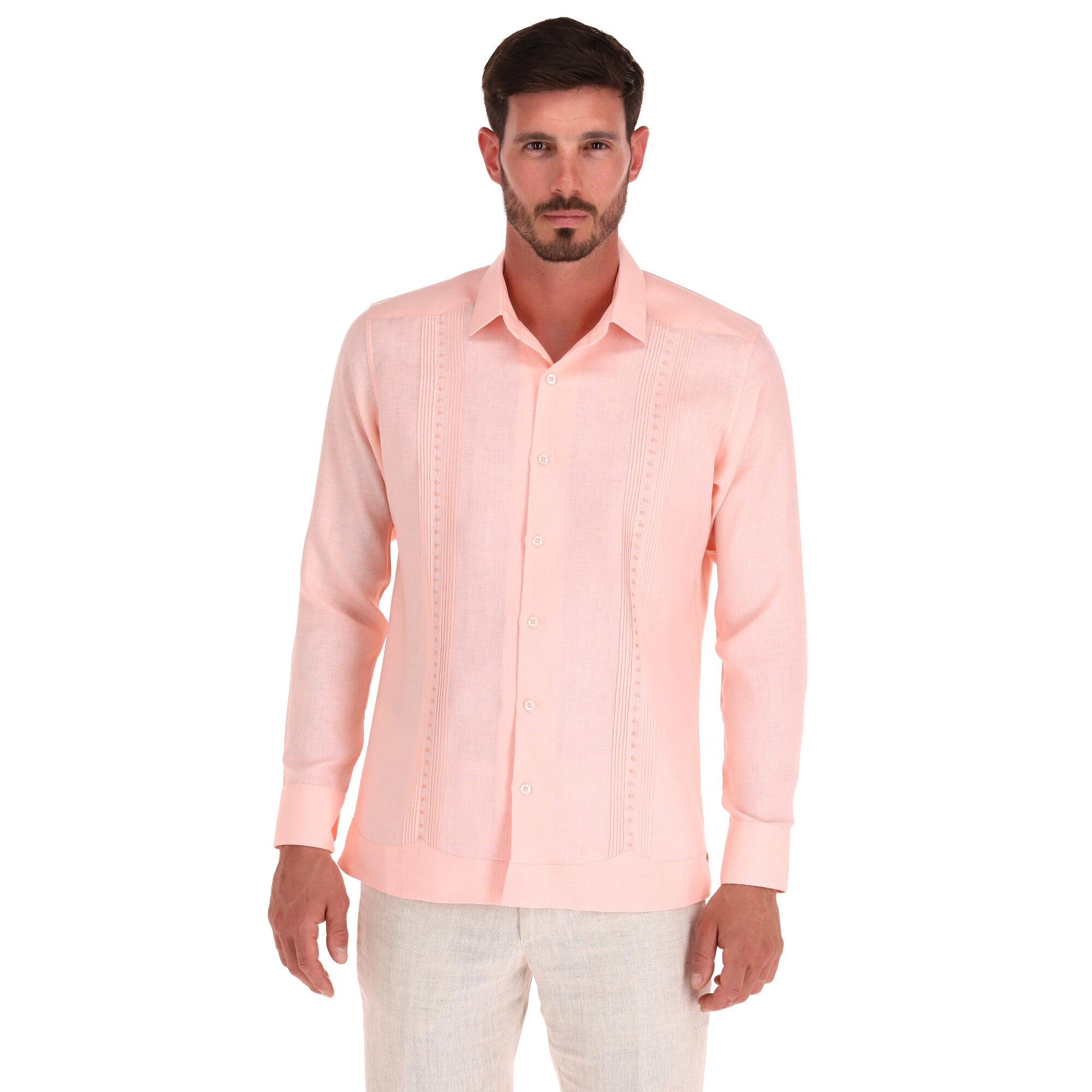 GUAYABERA MANGA LARGA SILKY DURAZNO