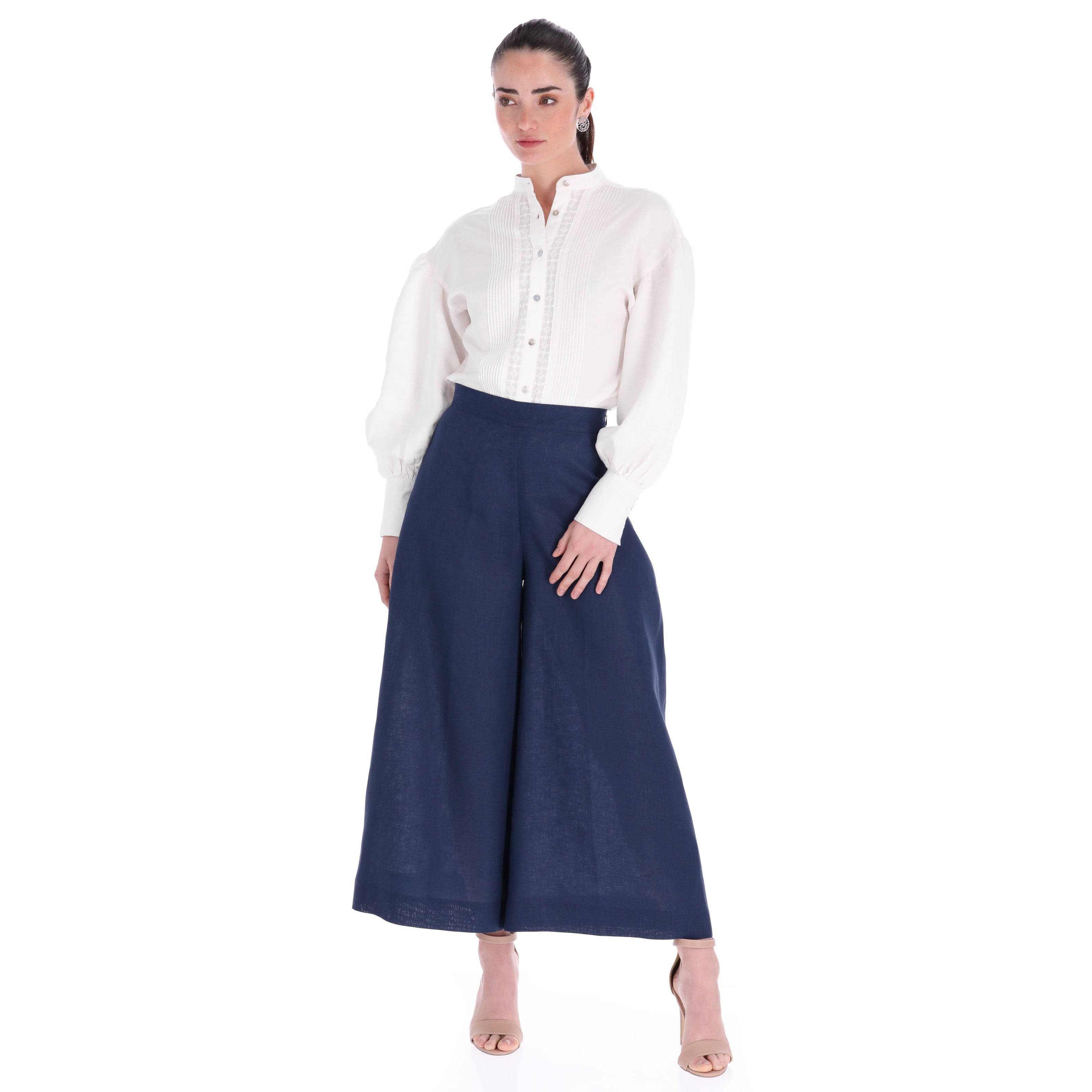 El Pantalón Culotte de Lino Viscosa es la pieza clave para un guardarropa sofisticado y veraniego. Captura la esencia de la elegancia relajada con un diseño que prioriza la comodidad y el estilo contemporáneo.