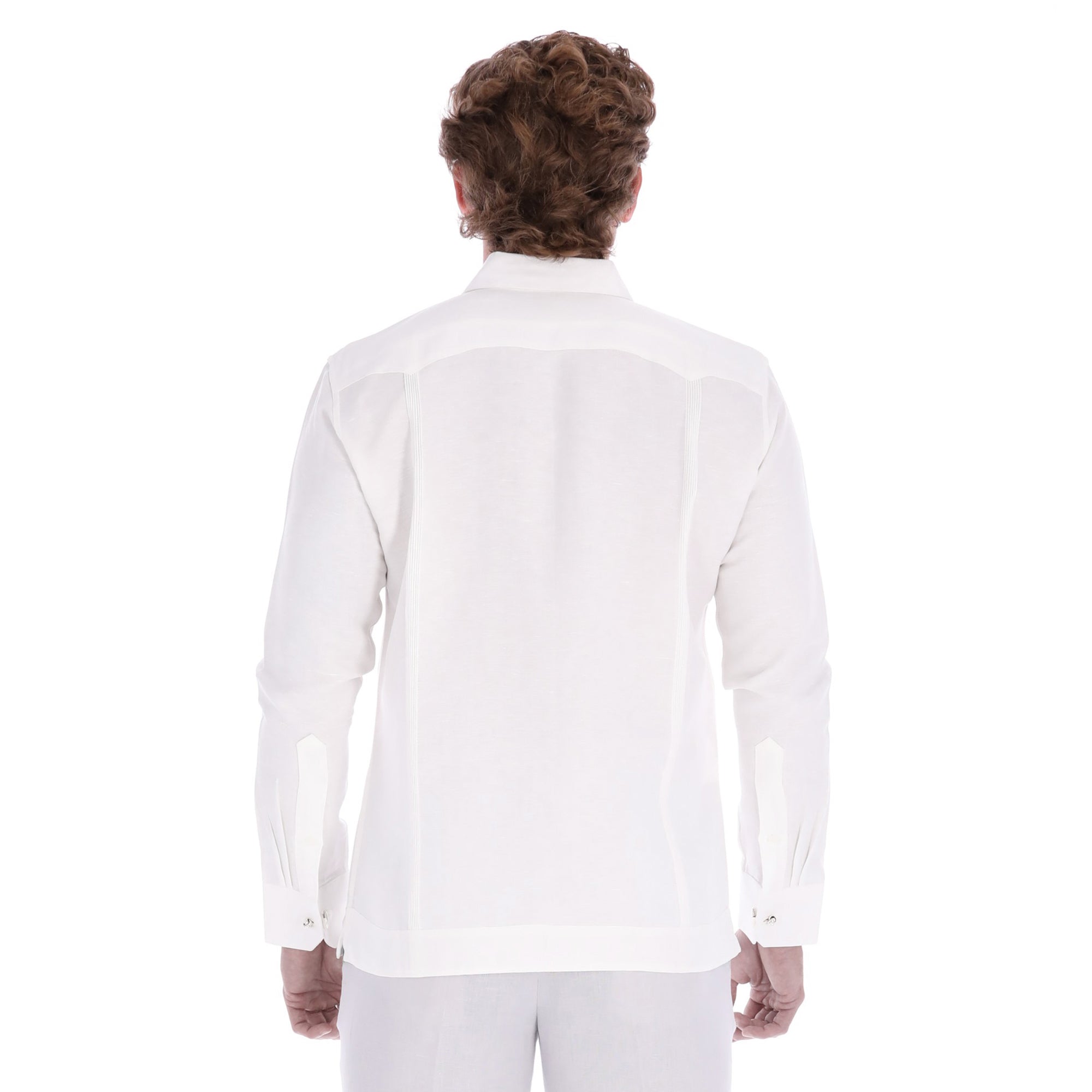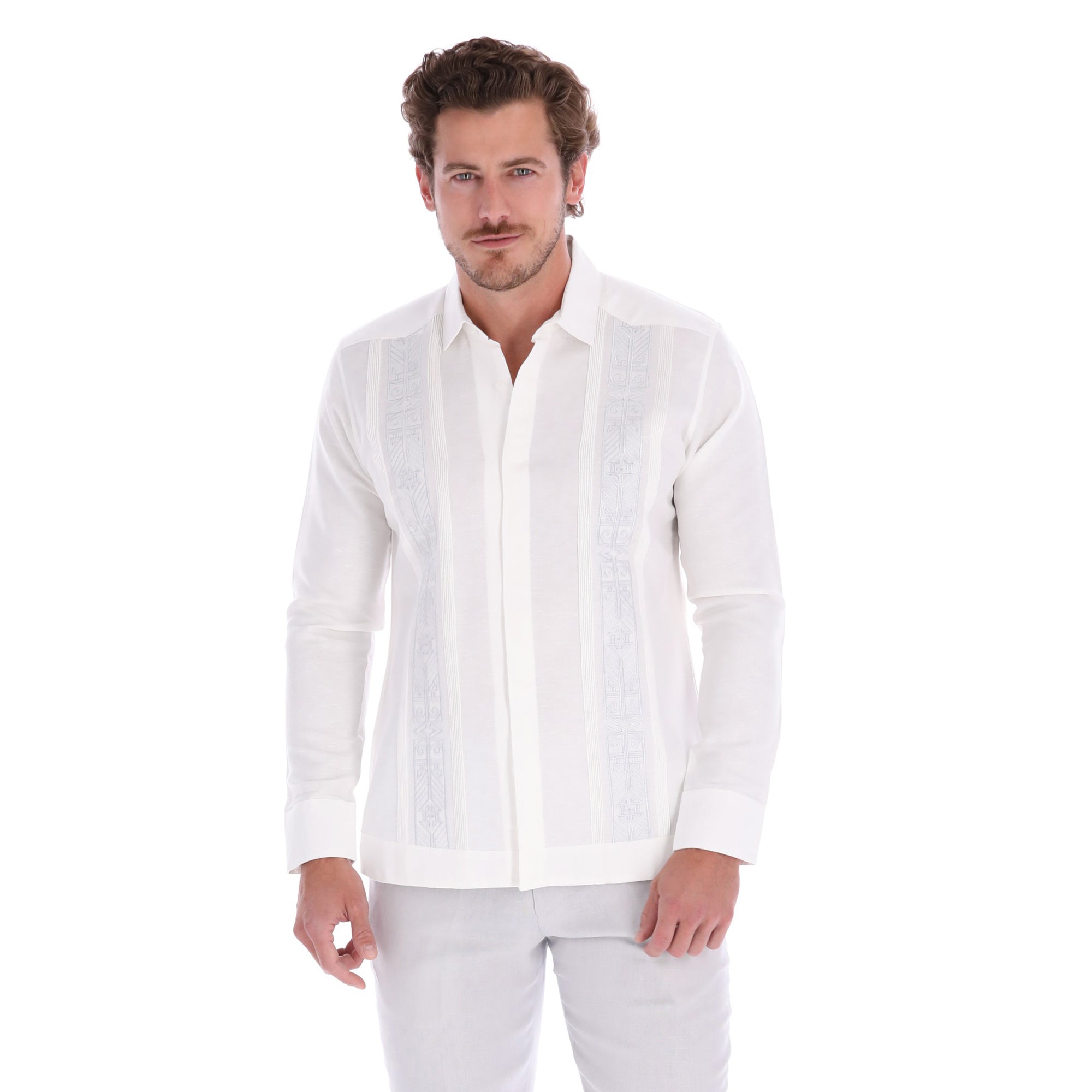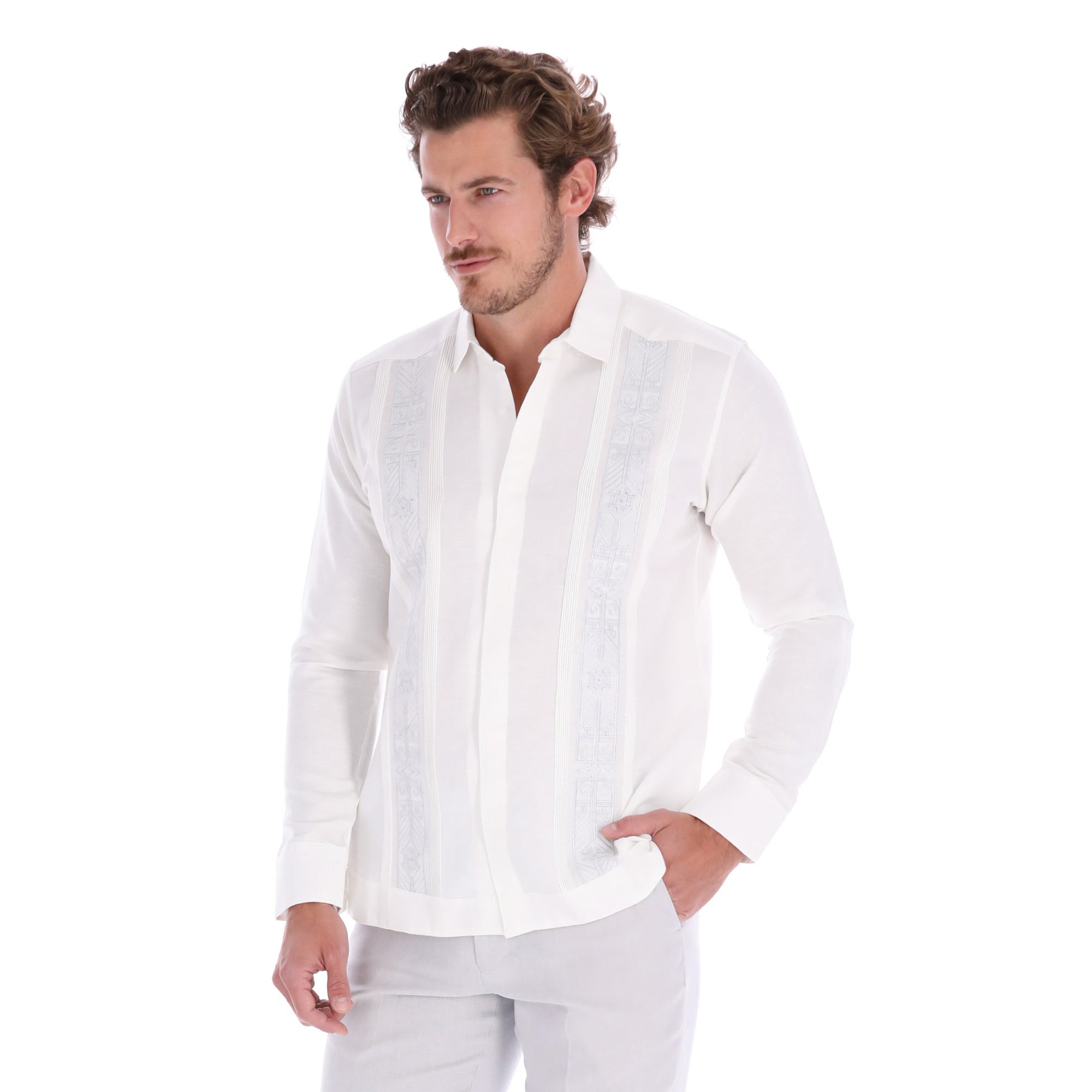 La Guayabera Hualli de Camasha es una prenda que redefine la elegancia tradicional con detalles únicos y acabados excepcionales, ideal para quienes valoran el arte en cada puntada.